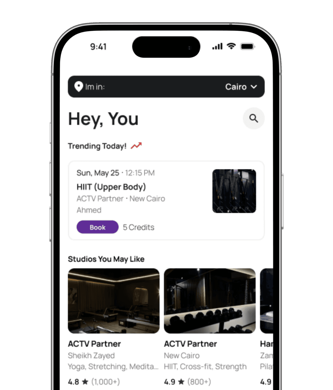 ACTV unites Egypt’s top gyms and studios in one app, making it effortless to discover, book, and enjoy classes that elevate your routine.
