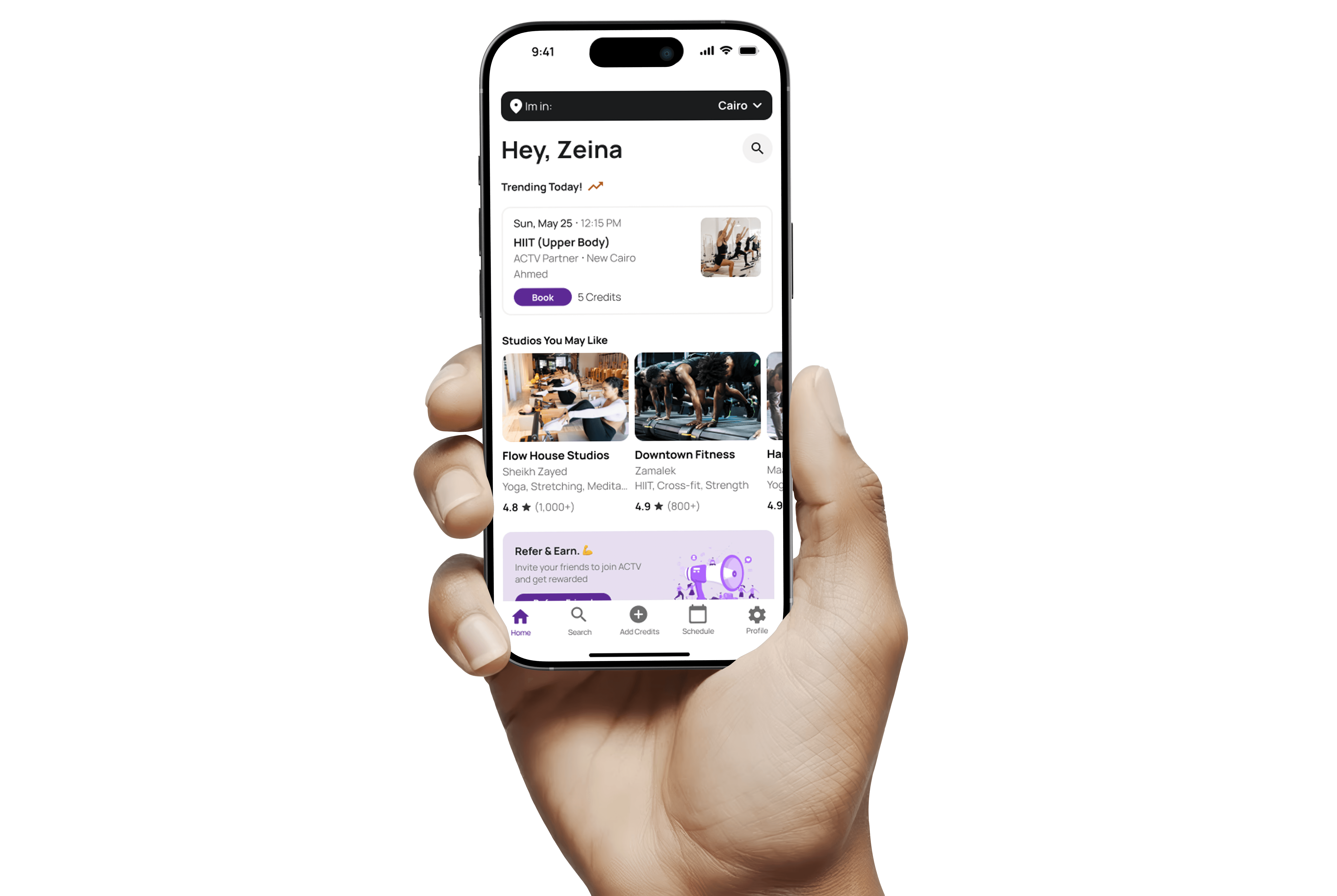 ACTV unites Egypt’s top gyms and studios in one app, making it effortless to discover, book, and enjoy classes that elevate your routine.
