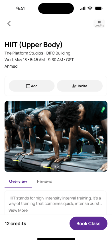 See coach, level, timing, credits, and location clearly laid out, so you always book the class that fits you best.